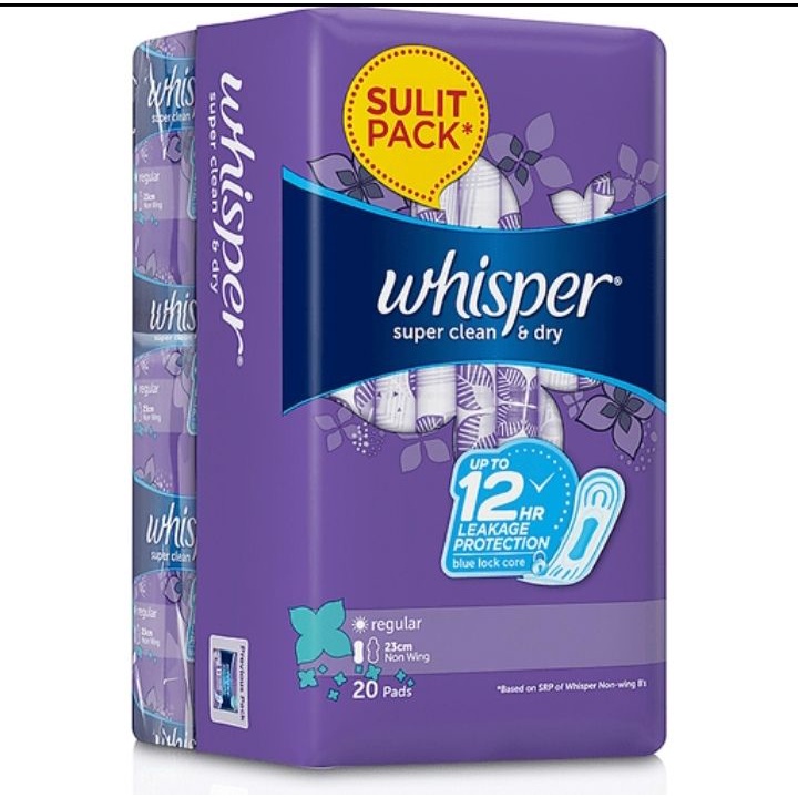 Whisper Sanitary Napkin Super Clean & Dry Regular Flow Shopee Philippines